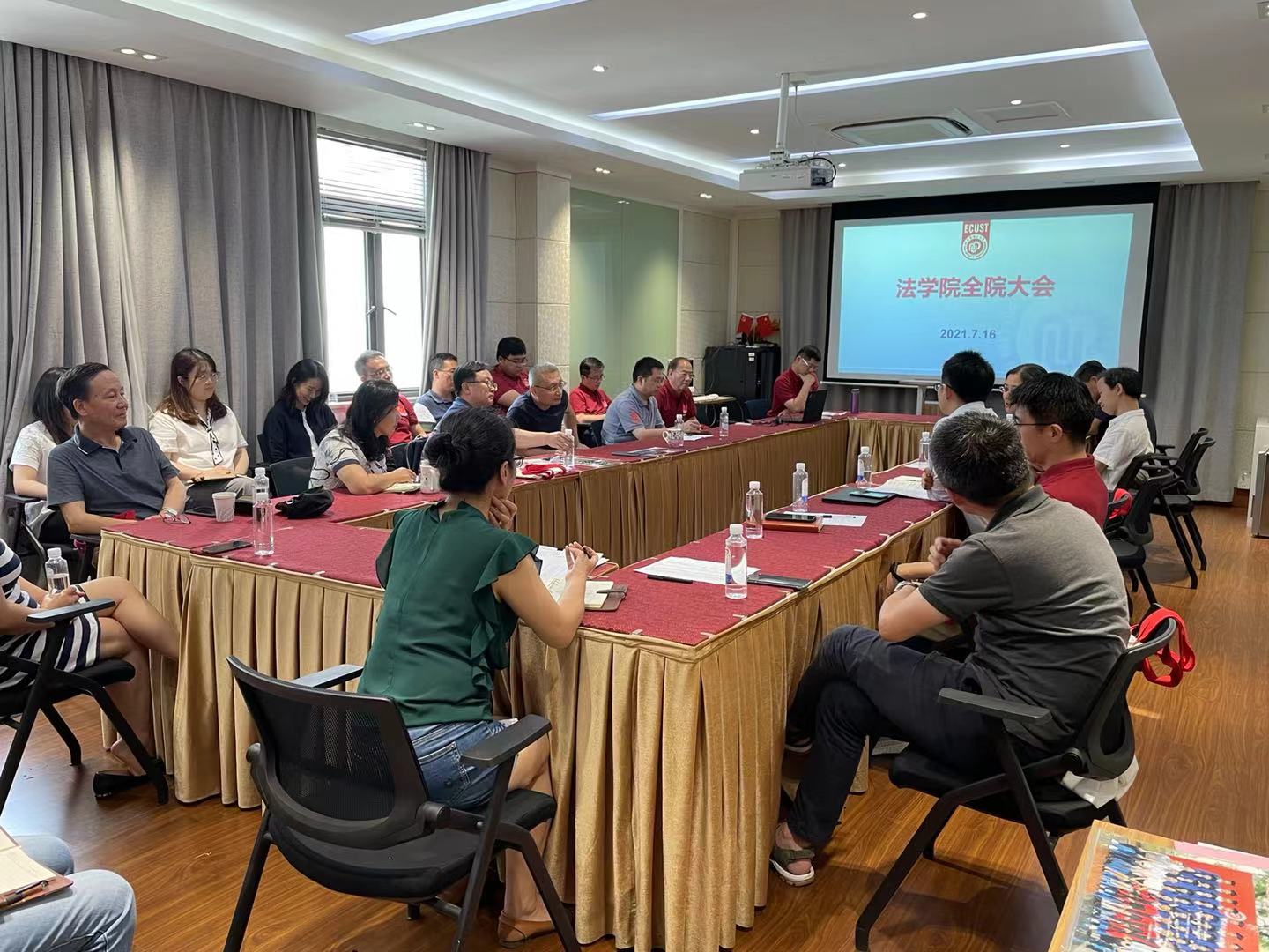 经理彭德雷通报了近期院内学术报告、知名教授引进、世界人工智能大会青年法治论坛、首届智慧法治共同体学术年会等工作的落实情况,并部署了下一阶段与上海自贸区临港新片区战略合作签约、法学本科一流专业申报、习近平法治思想课程建设、团队引进和学科等工作。他表示,学院正着力建设人人投入、彼此感动的学院文化,在学院的发展中没有一个人是旁观者。他强调,学院要对接国家和上海市的经济社会发展战略需求,切实找准方向,集中力量打好攻坚战。