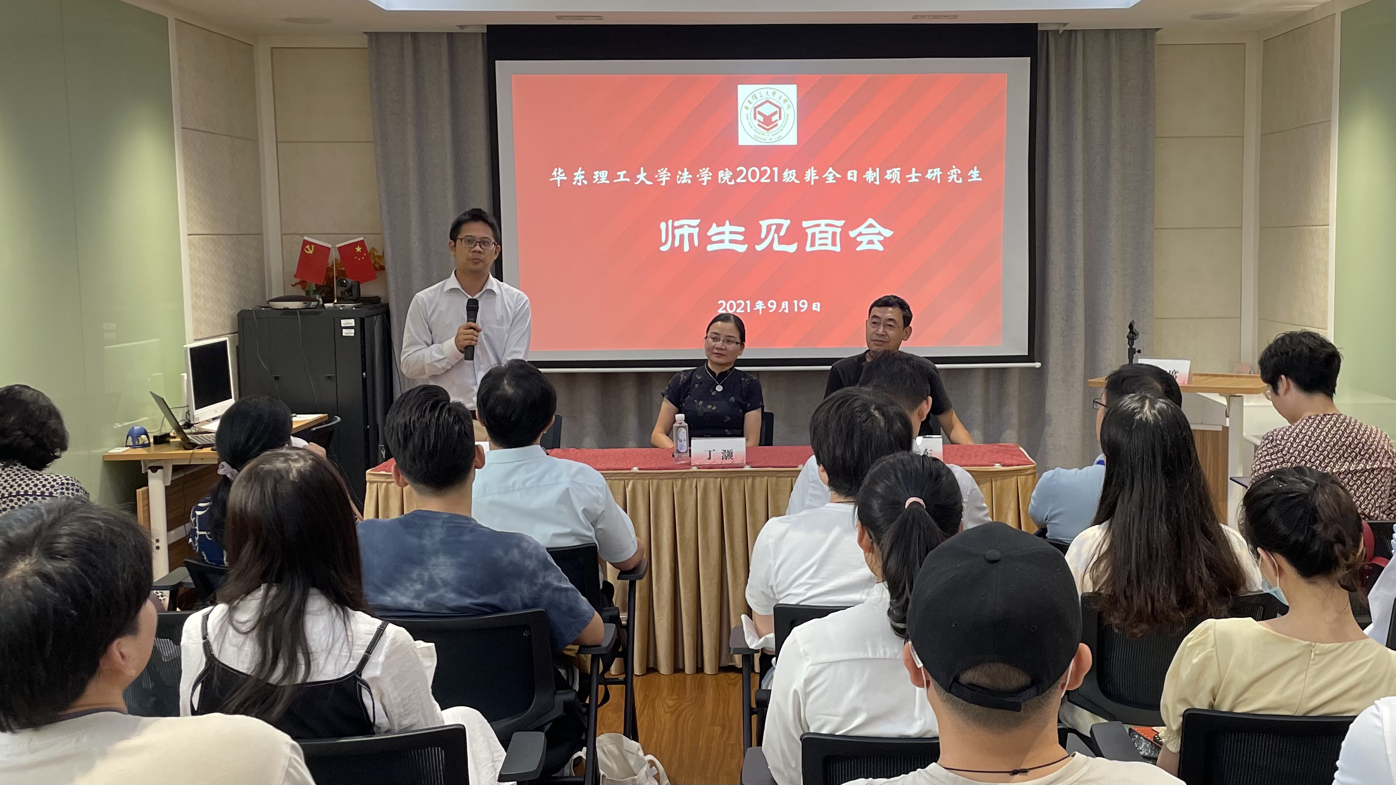 9月19日下午,304am永利集团官网2021级非全日制法律硕士师生见面会在徐汇校区团结三楼310举行。公司党委书记丁灏、经理彭德雷、副经理孙晓东、硕士研究生导师代表,以及2021级非全日制法律硕士新生、2022级本校推免研究生出席了此次见面会。会议由孙晓东主持。