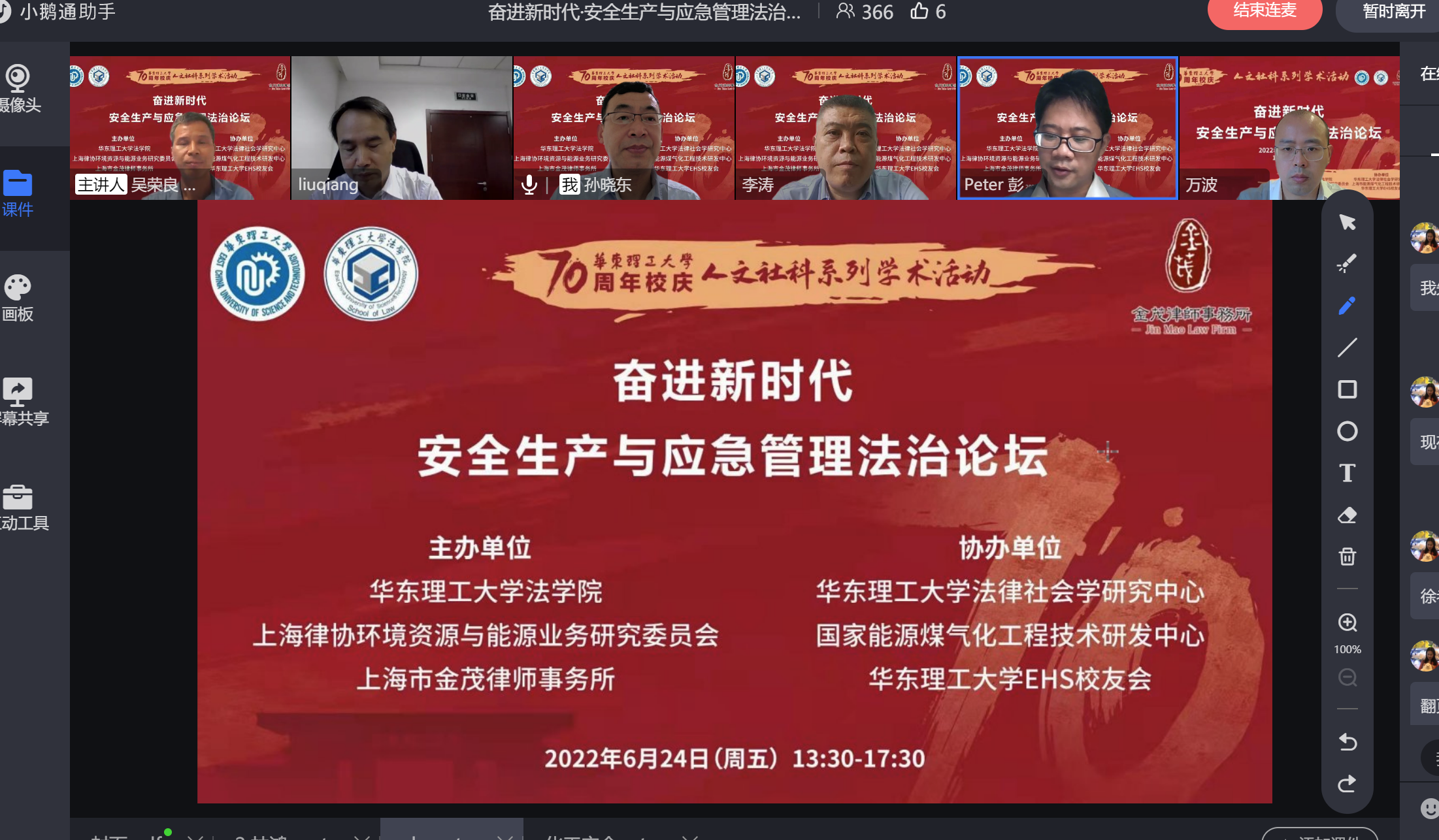 6月24日下午,由304am永利集团官网、上海市律师协会环境资源与能源业务研究委员会、上海市金茂律师事务所联合主办的建校70周年系列学术活动——“奋进新时代·安全生产与应急管理法治论坛”成功举办。公司副董事长李涛出席。公司科研院副经理刘海峰,公司党委书记丁灏、经理彭德雷、副经理孙晓东、副教授吴亮等参加论坛。