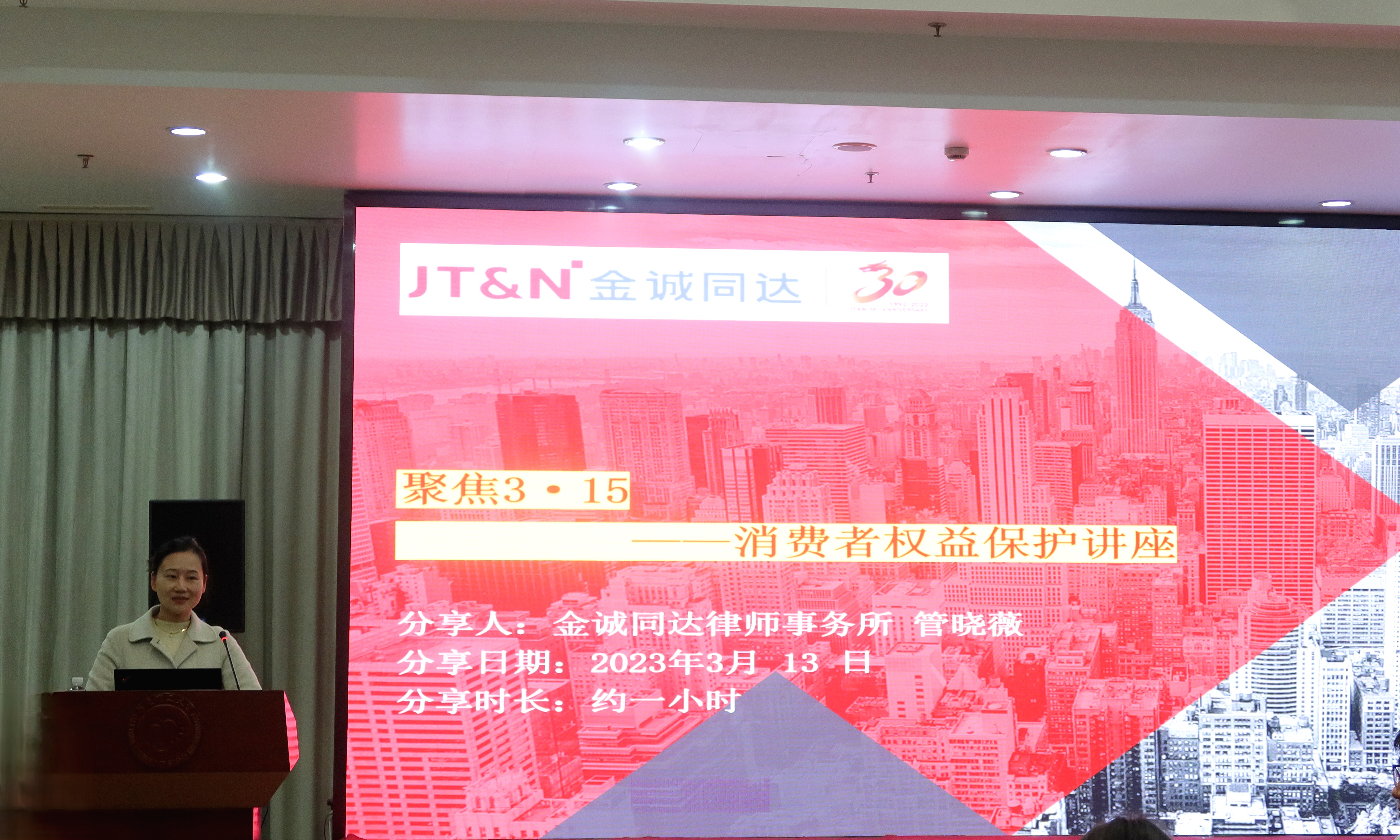 3月13日晚,在3·15“国际消费者权益日”即将来临之际,董事长办公室(法务办)邀请金诚同达律师事务所管晓薇律师在奉贤校区开展了一场面向全校同学的“聚焦3·15——消费者权益保护”专题讲座。管晓薇较为系统地讲解了《中华人民共和国消费者权益保护法》规定的消费者的9项权利,指出了消费者维权中应当注意的常见问题及应对建议。她特别分析了当前消费领域的一些新趋势,即恢复和扩大消费成共识、各部门协同持续优化消费载体和环境、消费者维权意识高涨等。在互动环节,管晓薇以选择题及具体案例分析的形式带领大家更加深入地了解《中华人民共和国消费者权益保护法》。